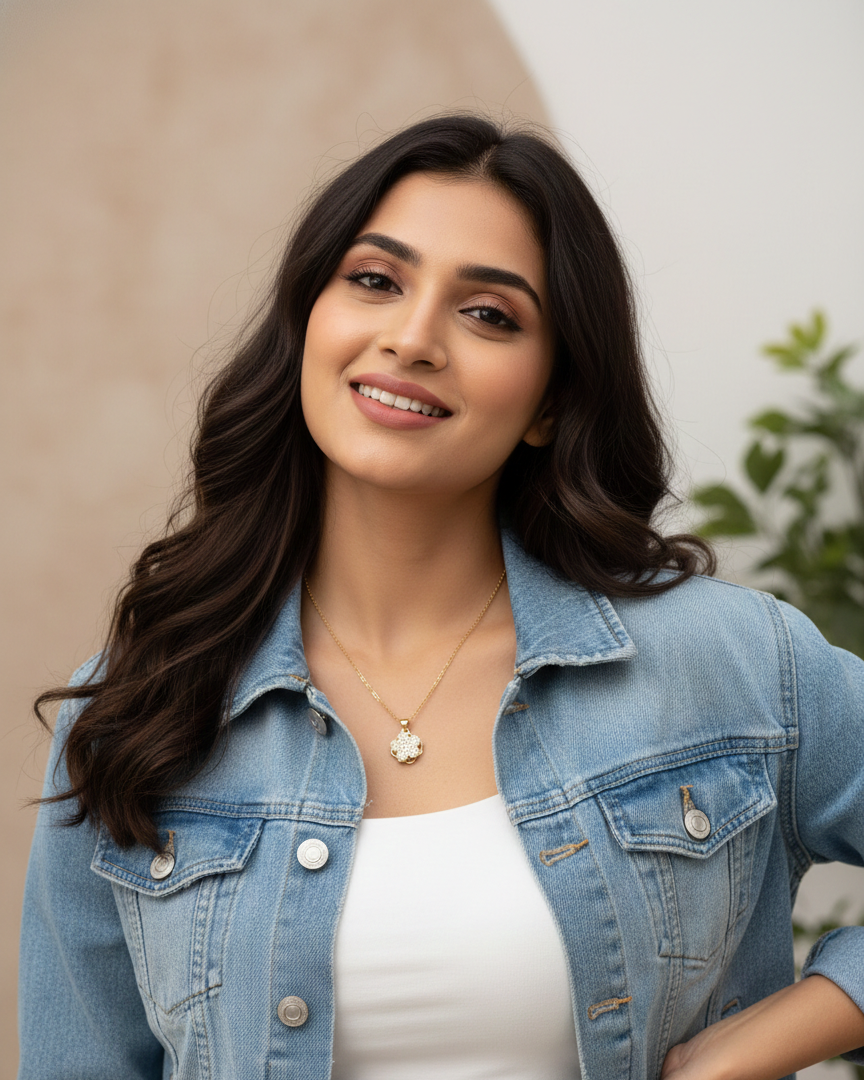 Upgrade your style with this gold plated bloom clover pendant necklace featuring sparkling cubic zirconia stones in a beautiful five petal floral shape. Designed with an anti-tarnish polish and a lightweight finish, it is perfect for daily wear, parties, office looks, and gifting.