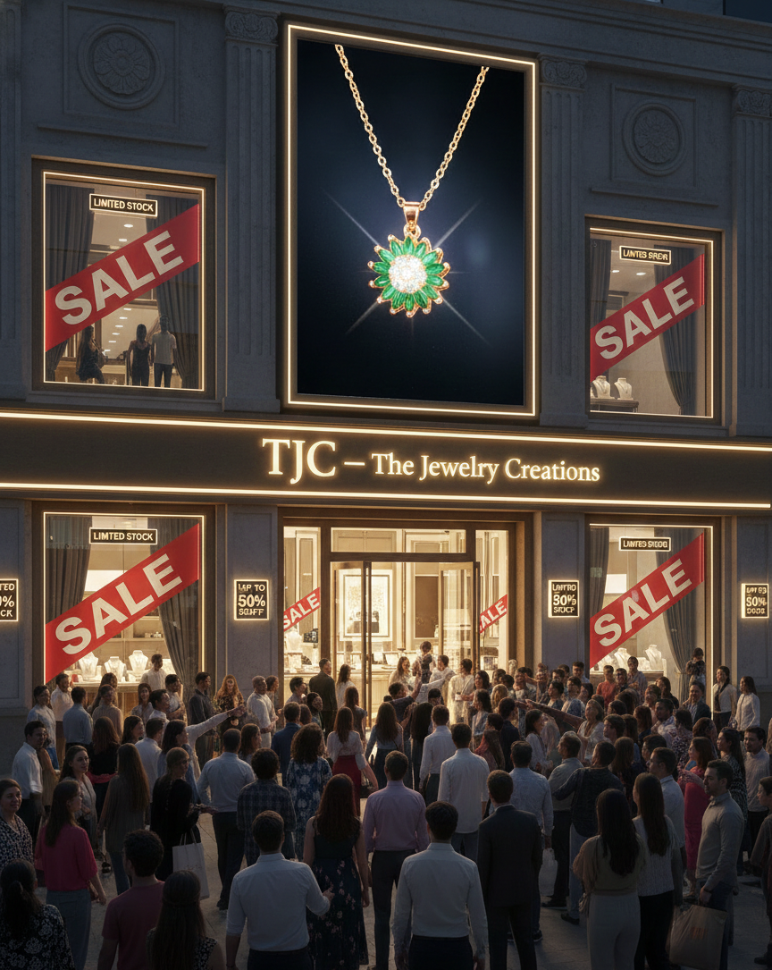 Our store is located at TJC – The Jewelry Creations, Tonk Road, Shree Ji Nagar, Jaipur – 302018, Rajasthan, India. You can also explore and shop online anytime.