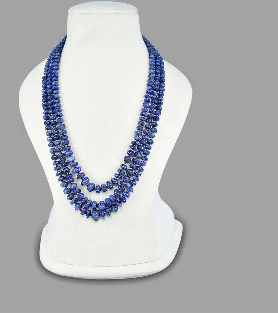 Lapis Lazuli Inspired Indian Glass Stone Beaded Necklace (3-Layer Mala, Free Size)
