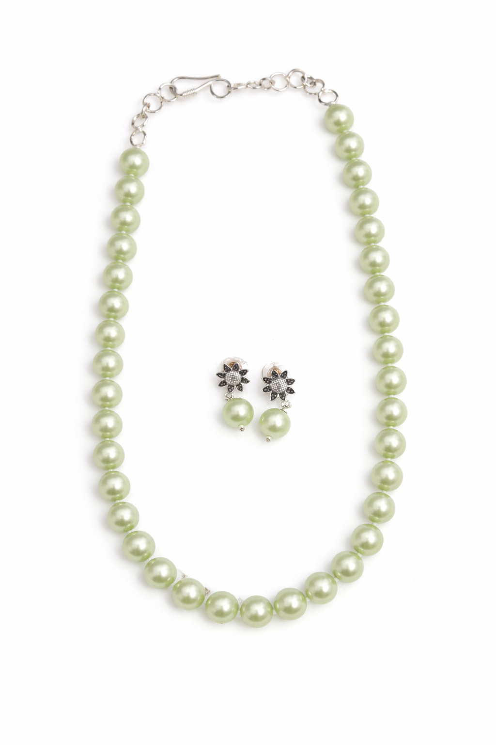 Add timeless elegance to your ethnic look with this classic Mint Color glass beaded necklace. Designed with round glass pearls and a sturdy brass base, this single-layer mala is lightweight, graceful, and perfect for everyday traditional wear as well as festive occasions.