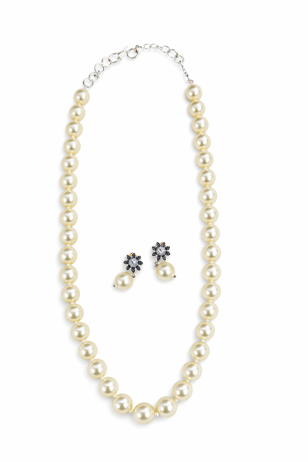 Add timeless elegance to your ethnic look with this classic Off White Color glass beaded necklace. Designed with round glass pearls and a sturdy brass base, this single-layer mala is lightweight, graceful, and perfect for everyday traditional wear as well as festive occasions.