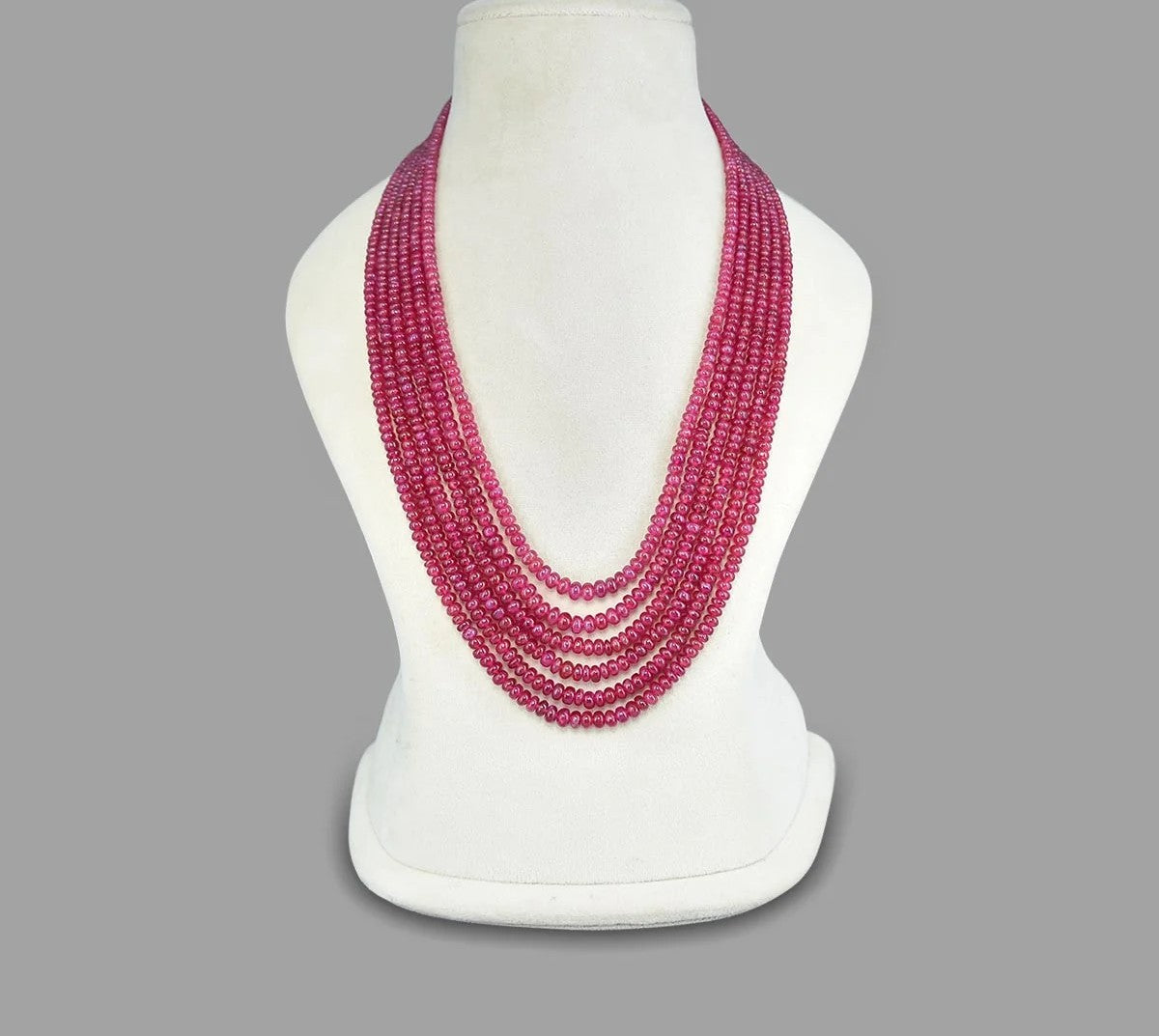 Experience elegance with spiritual essence through this Natural Ruby Color Inspired Onyx Beaded Necklace, beautifully designed in a 6-layer mala pattern. Crafted with finely polished 3×4 mm round onyx glass beads, the deep ruby hue symbolizes strength, devotion, and timeless beauty.