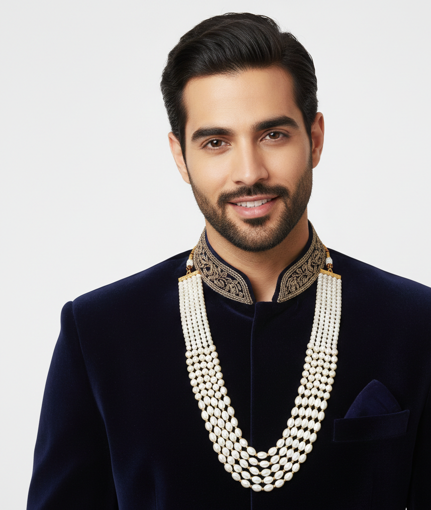 Premium Golden Aventurine Glass Pearl Groom Beaded Necklace