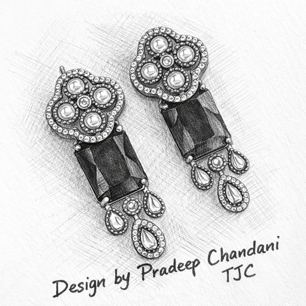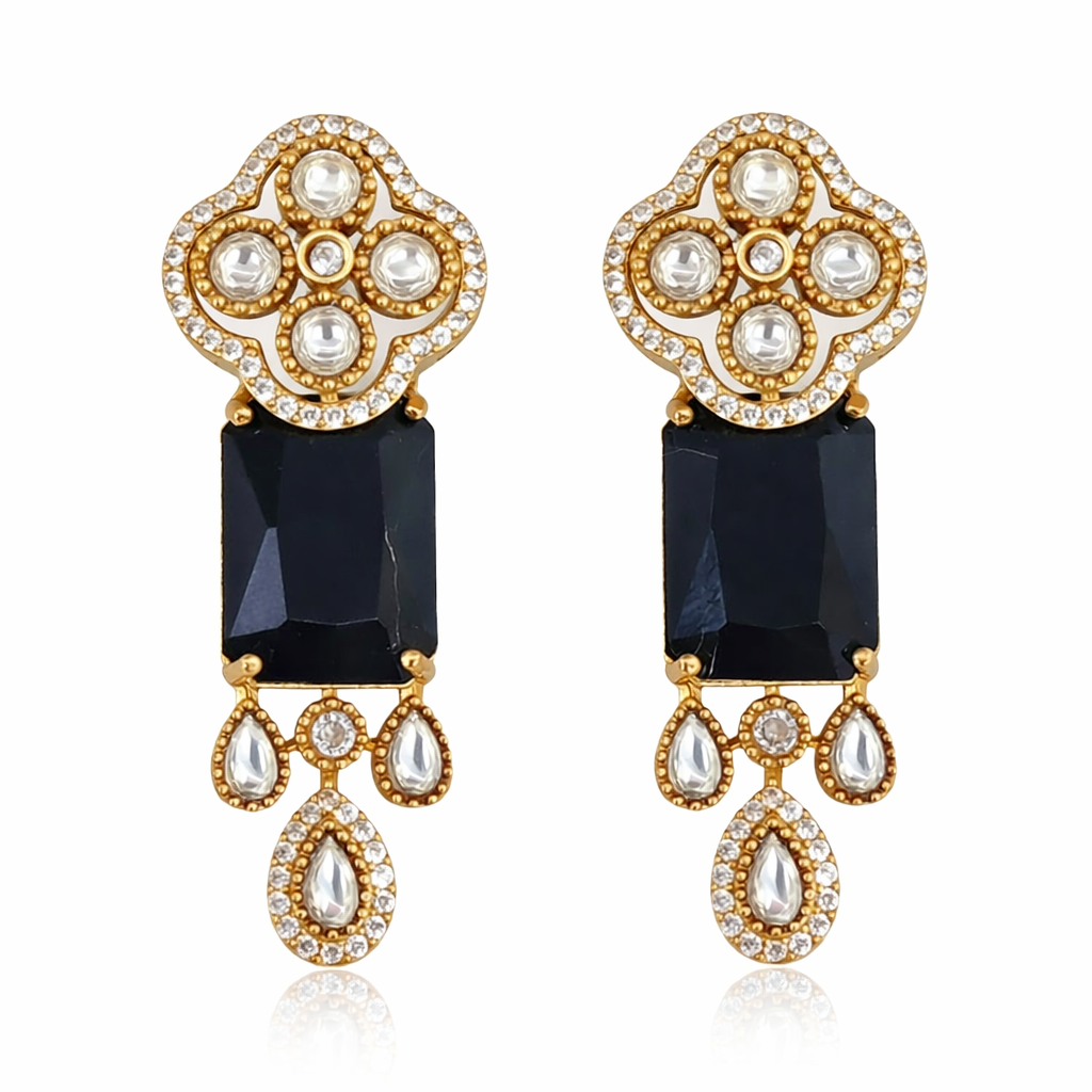 Traditional Long Tops Earrings in Black Onyx with Premium Quality & 14K Antique Gold Plated Earrings